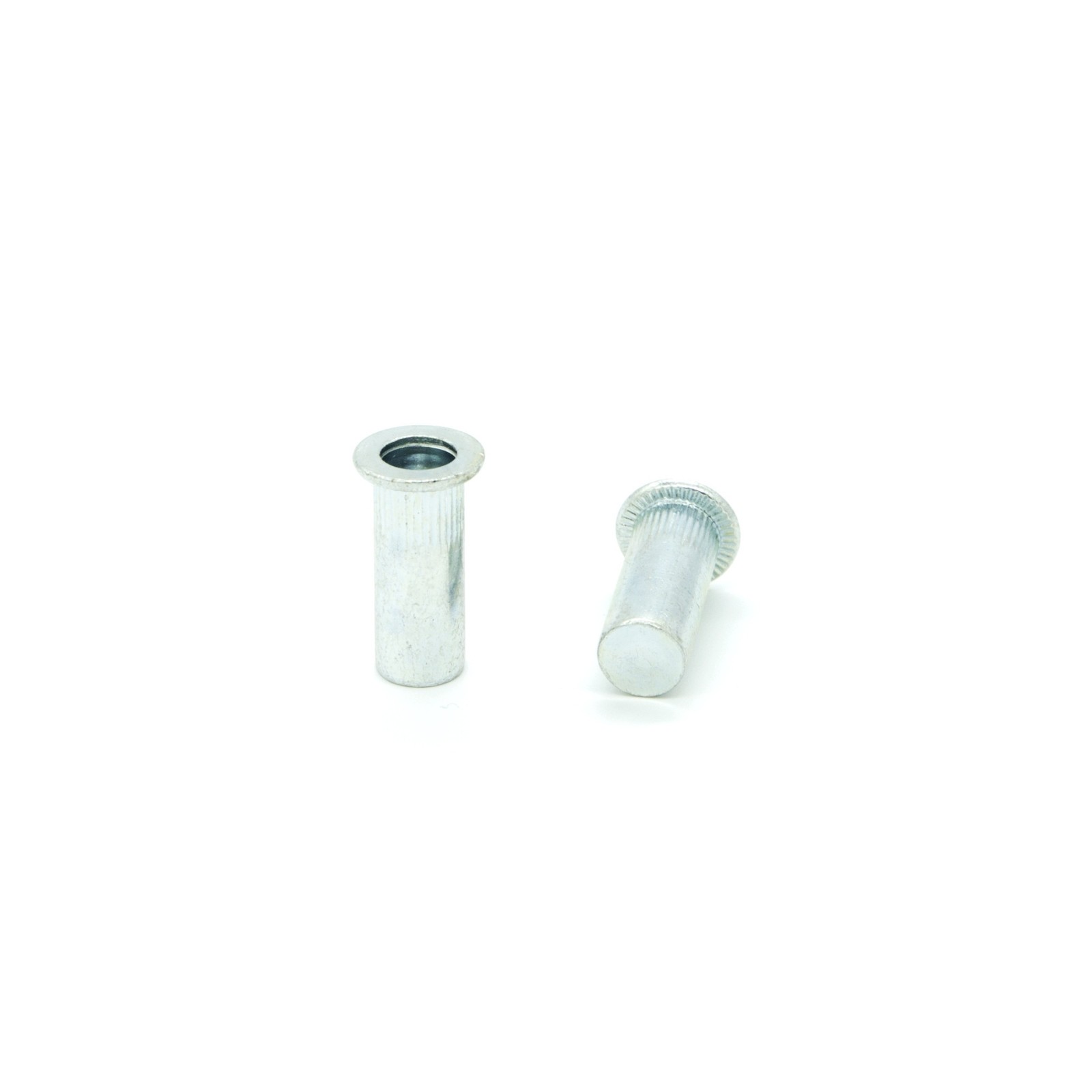 Blind rivetnuts Steel Cylindrical grooved closed end Flat Head M8 grip range 0.5-3.0mm - box 250 pcs
