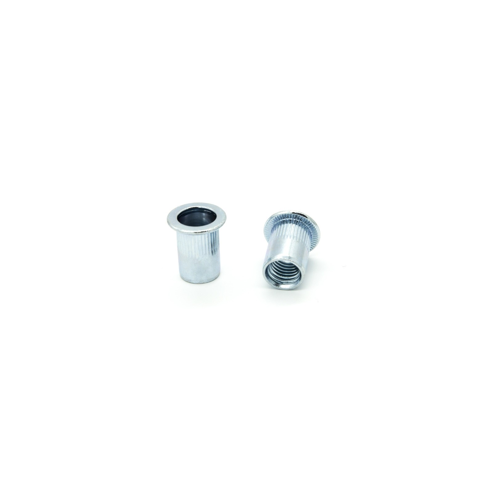 Blind rivetnuts Steel Cylindrical Grooved open end Flat Head M4 grip range 0.3-3.0mm - box 1000 pcs